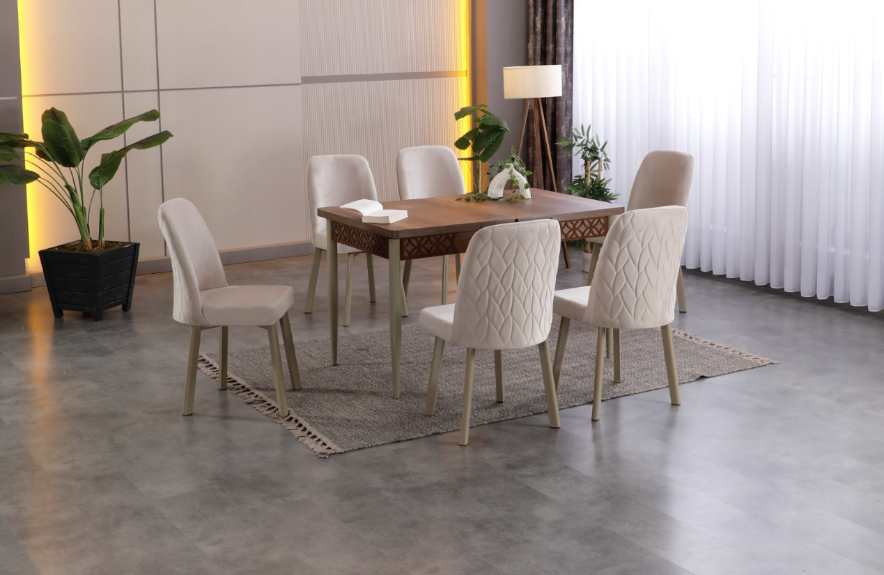 KUARTO DINING SET - KAREGOLD CHAIR - 80X130+40 EXTANDABLE TABLE